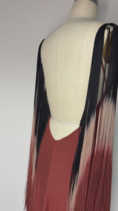 Unleash your free spirit with this maxi dress. Made of soft double cotton, it's comfy, sexy and perfect for a western look. Adorned with fringes, it's a playful addition to any wardrobe. Embrace your wild side with the Spirit Maxi Dress!